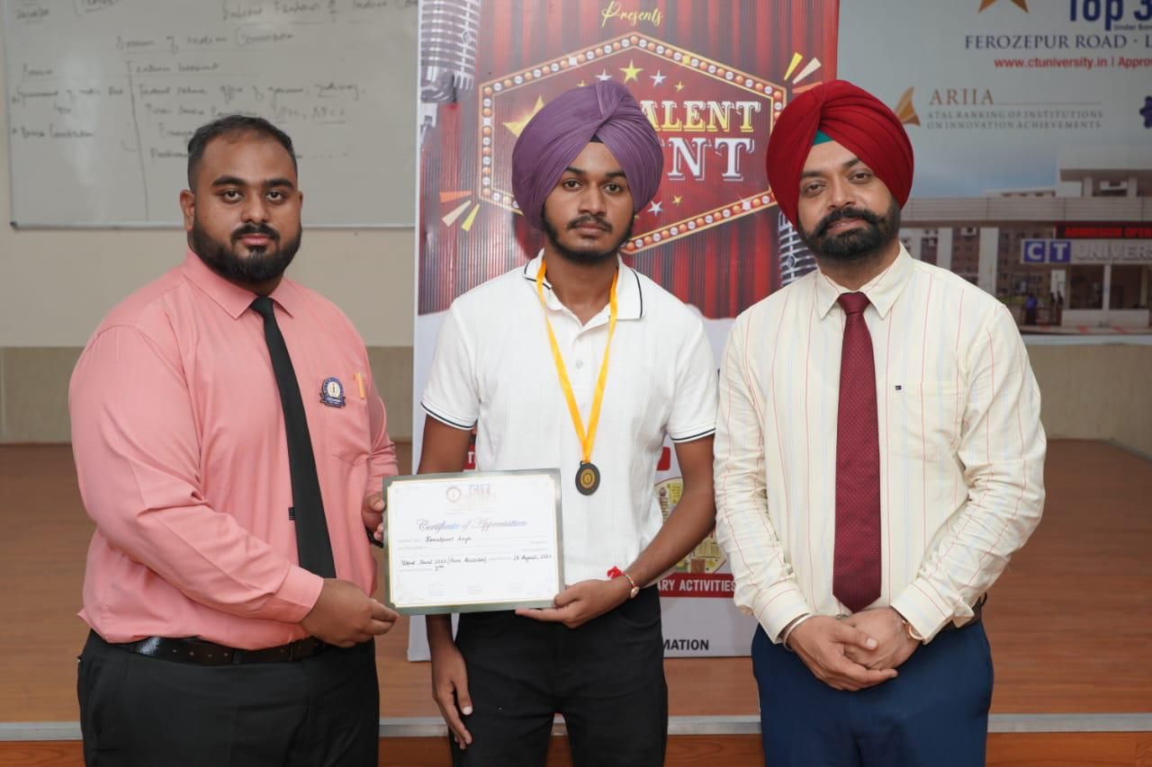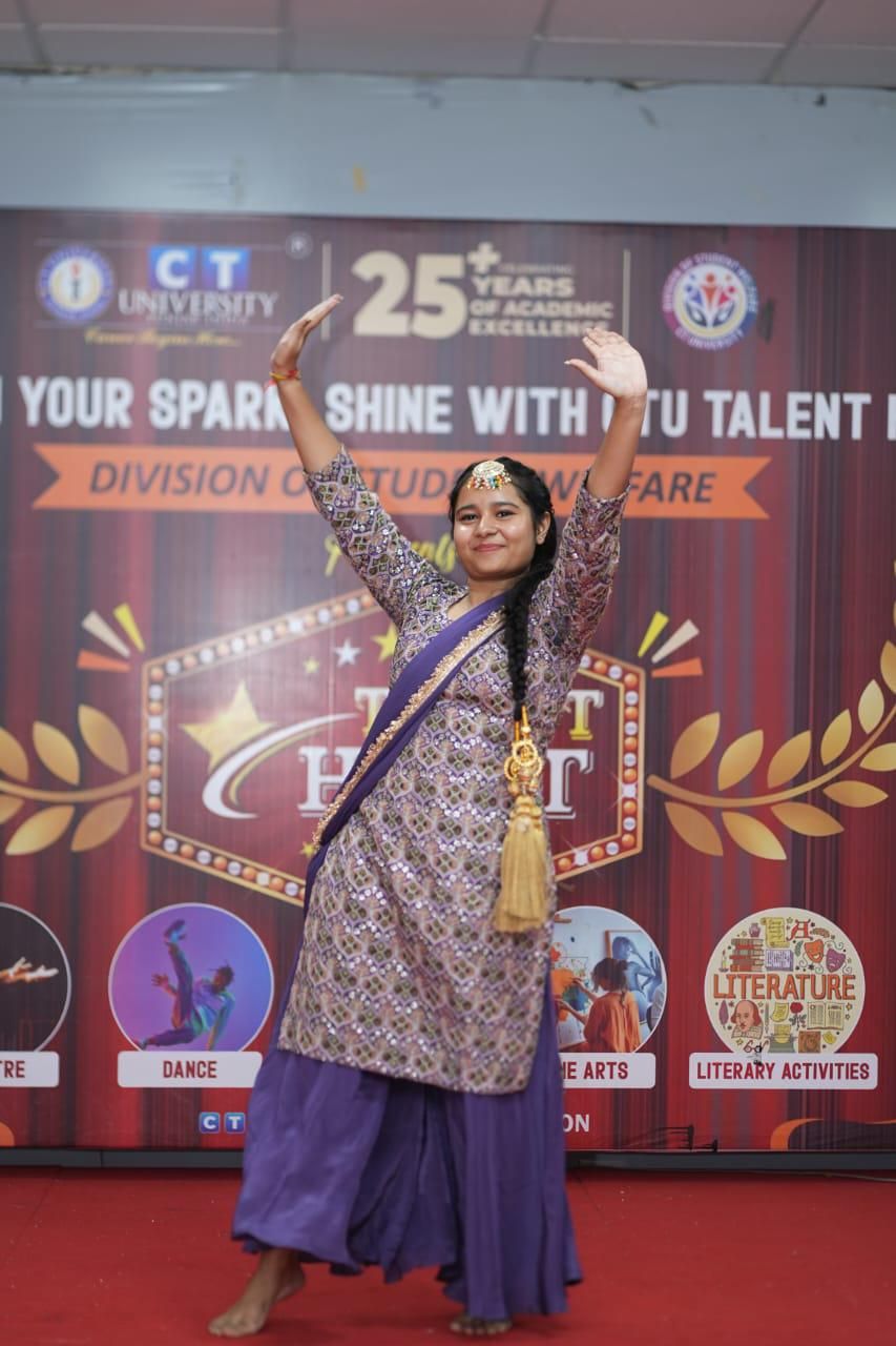CT University's Talent Hunt, organized by the Department of Student Welfare, was a resounding success, celebrating the diverse and exceptional talents within the student community. With over 200 participants from various disciplines, the event showcased a wide array of creative competitions, spanning Dance, Music, Theatre, Fine Arts, and Literary Events.Among the standout performers and winners, Harmandeep Kaur from the School of Healthcare and Paramedical Sciences clinched the 1st place in Poster Making, while Anmolpreet Kaur secured the 2nd place in Mehndi. In the Poetry category, Harpreet Kaur (School of Healthcare and Paramedical Sciences) took the 1st place, and Deep Priya (School of Management Studies) claimed the 2nd place, with Gurvinder Singh (School of Healthcare and Paramedical Sciences) earning the 3rd place.Singing categories saw remarkable talent shine, with Sanchi from the School of Law securing the 1st place in Classical Solo, while Komalpreet Kaur (School of Humanities and Physical Education) took the 1st place in Folk Solo. In the Western Solo category, Udgaa Mandal (School of Humanities and Physical Education) impressed the judges, earning the 1st place.Dance enthusiasts also dazzled the audience, with Divayam and his team (School of Humanities and Physical Education) taking the 1st place in Group Dance Western, and Nisha and her team (School of Law) wowing the crowd with the 1st place in Group Dance Folk. In Music, Gurjit Singh (School of Law) excelled in Music Instrumental, and Vikram (School of Engineering and Technology) showcased his vocal prowess, securing 1st place in Music Vocal - Western and Folk, while also sharing the 1st place in Music Vocal - Classical with Gurjit Singh.Asifa Gulzar (School of Management Studies) displayed her talent by winning the 1st place in Mimicry, while Divyam and Ankush (School of Humanities and Physical Education) left the audience in splits, earning the 1st place in Stand-Up Comedy. In the Skit category, Diyanshu and his team (School of Management Studies) claimed the 1st place, while Gurjot and team secured the 2nd place.The Pro Vice-Chancellor of CT University expressed his delight in the remarkable showcase of talent, emphasizing the importance of such events in boosting students' confidence and personal development. The presence of esteemed figures like Pro Chancellor Dr. Manbir Singh and Deputy Director of the Department of Student Welfare Davinder Singh, along with dedicated faculty and enthusiastic students, made this event a memorable one. The event was judged by Deputy Director of Cultural Affairs, Sarghi Kaur Barring.
